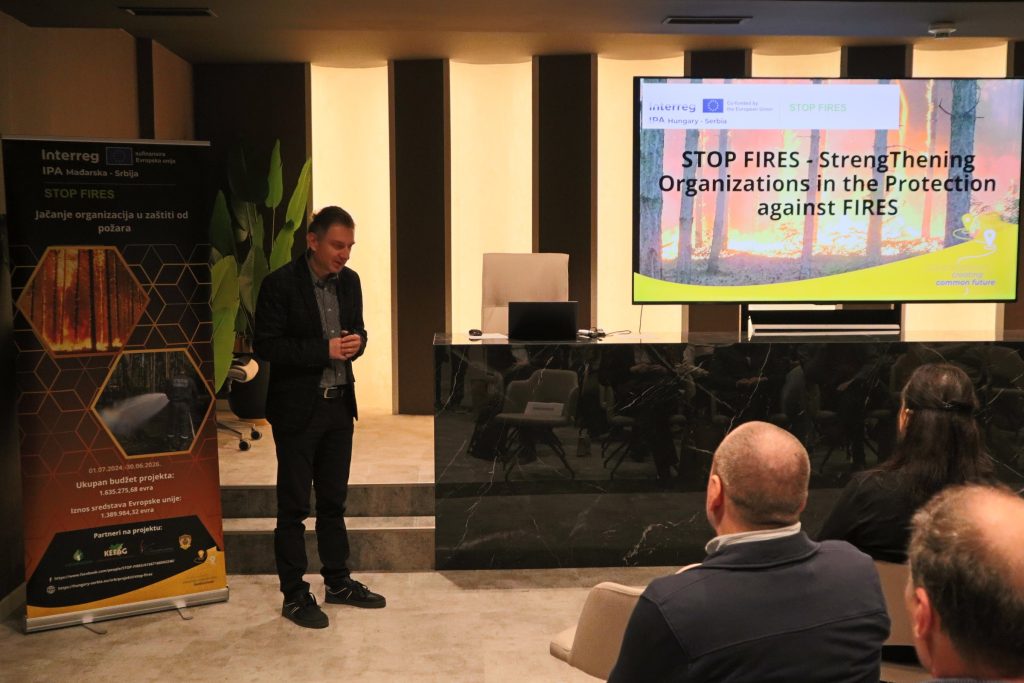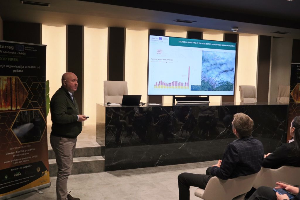 U uvodnom delu prisutnima se obratio dr Bojan Tubić, koordinator projekta ispred JP „Vojvodinašume“, vodećeg partnera, koji je predstavio ključne aktivnosti i dosadašnje rezultate projekta. Prof. dr Slobodan Milanović sa Šumarskog fakulteta Univerziteta u Beogradu govorio je o trenutnom stanju i glavnim izazovima u vezi sa šumskim požarima u prekograničnom području, ukazujući na značaj sistemskog pristupa, razmene podataka i koordinisanog odgovora nadležnih službi.