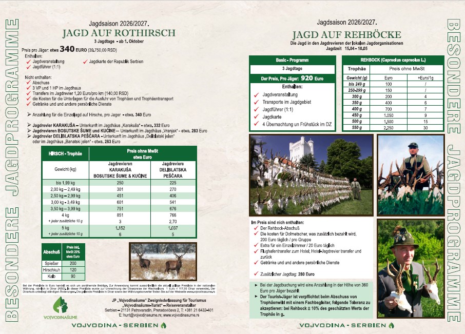 | JAGDKATALOG | PREISLISTE JAGDSAISON 2026-27 | BESONDERE JAGDPROGRAMME 2026-27 | BESONDER REISEBEDINGUNGEN FUR DEN JAGDTOURISMUS |